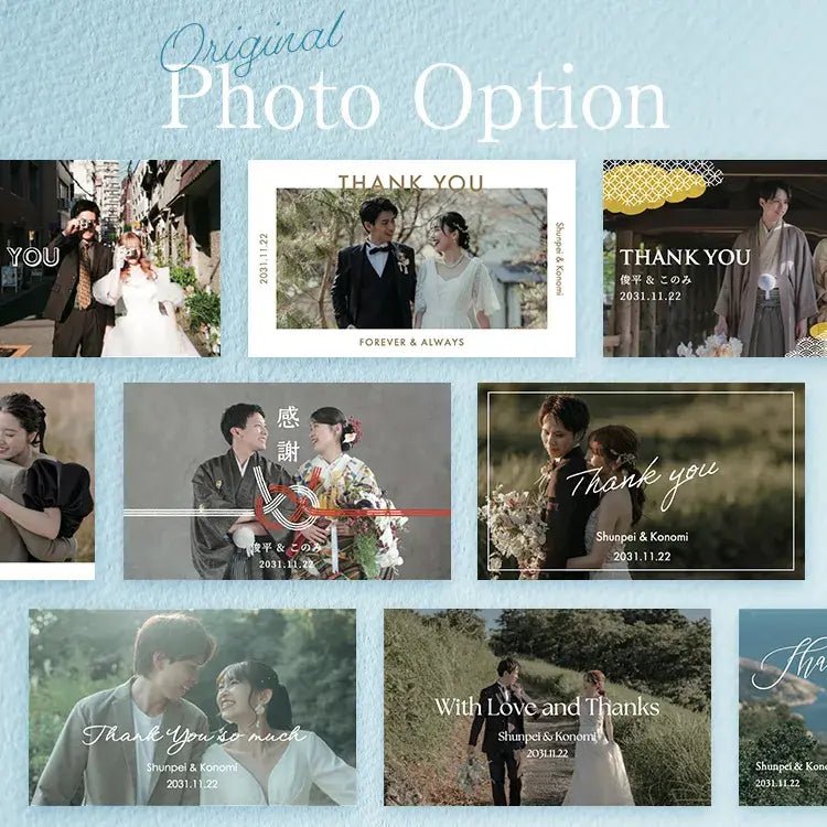 fitauの写真掲載オプションでは、おふたりの写真はもちろん、思い出の風景や挙式会場の一枚、テーマに合わせたイメージ画像など、さまざまなお写真をギフトカードになじむ形でお仕立てします。