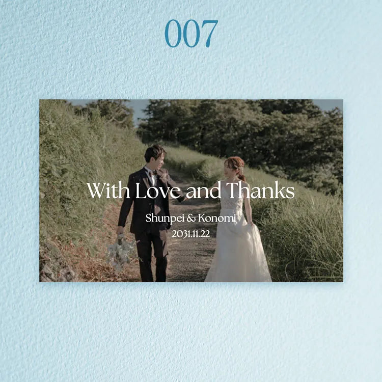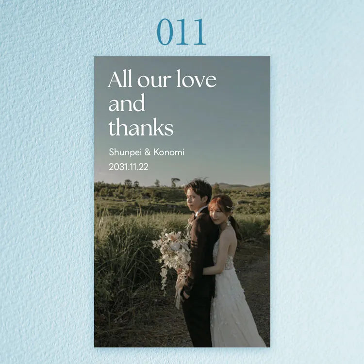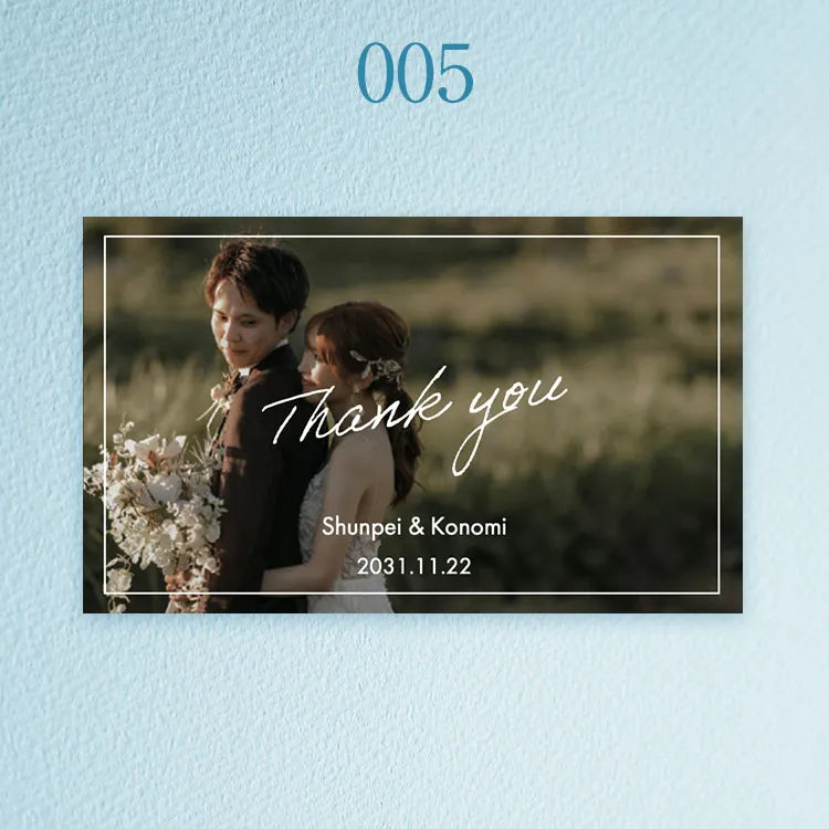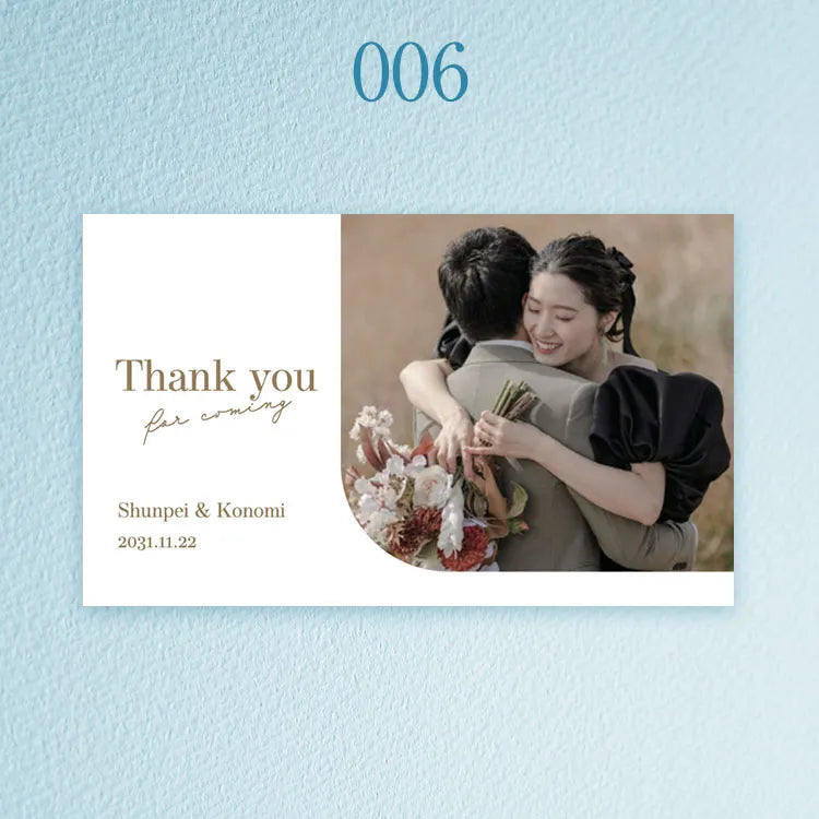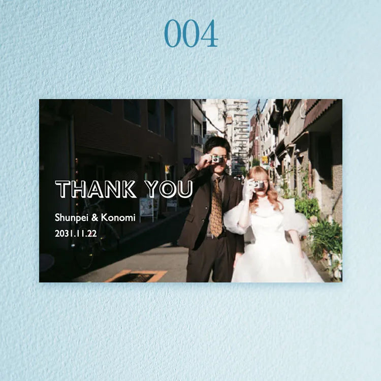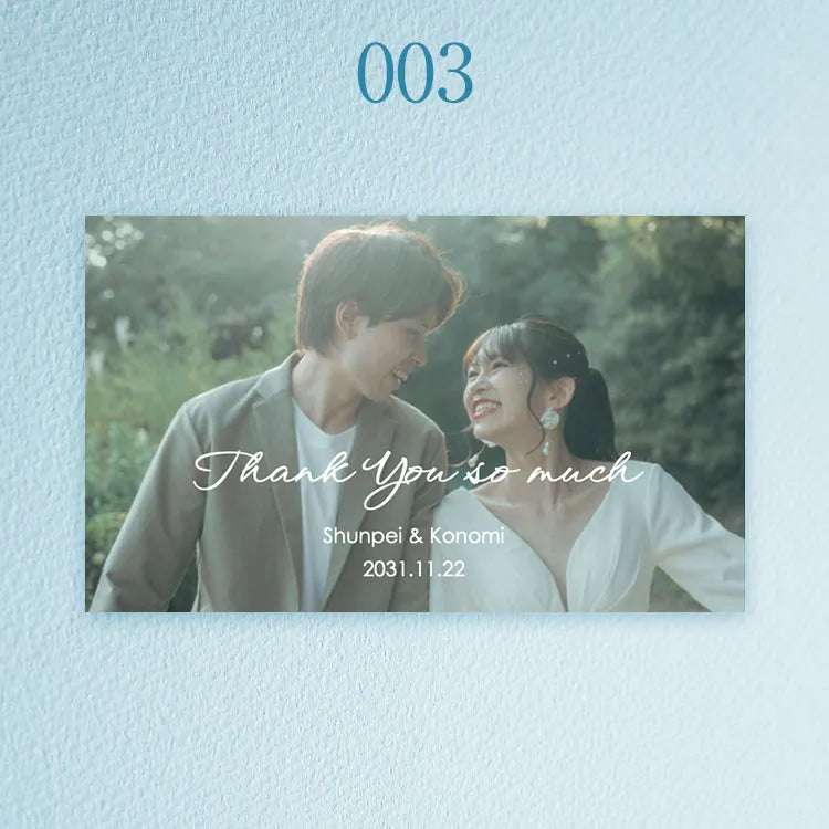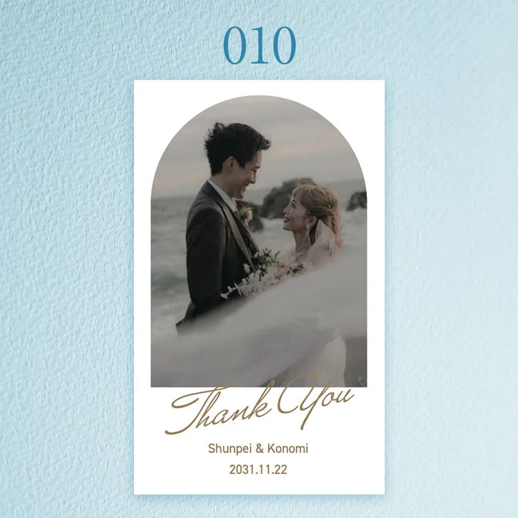 写真・お名前・記念日を添えた一枚は、ギフトにさりげない個性とあたたかさを生み、おふたりの想いがより自然に伝わる世界にひとつの仕上がりになります。
